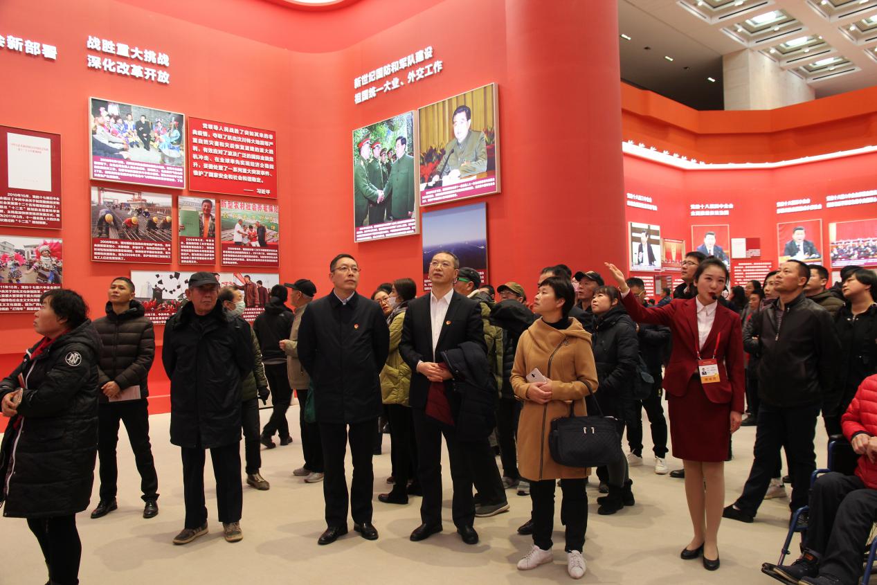 在講解員的引導下,大家先后參觀第一展區偉大的變革、第二展區壯美篇章、第三展區關鍵抉擇--黨中央推進改革開放的戰略擘畫、第四展區歷史巨變、第五展區大國氣象。展覽中運用大量的圖片、數據、模型和沙盤、實物等,運用聲光電等多種元素將相關內容形象、直觀地傳遞給參觀者,令人耳目一新,每一展區都給大家留下了深刻印象。