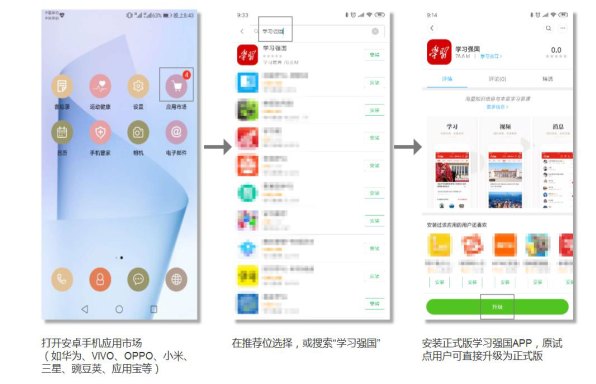1. 通過www.xuexi.cn網站首頁掃描二維碼,或者手機應用市場搜索“學習強國”,進行APP安裝。
