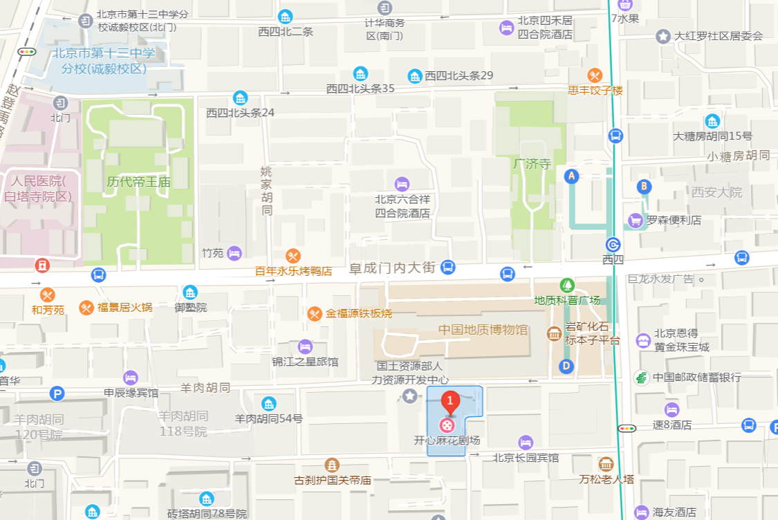 北京地質(zhì)禮堂(北京市西城區(qū)羊肉胡同30號)。