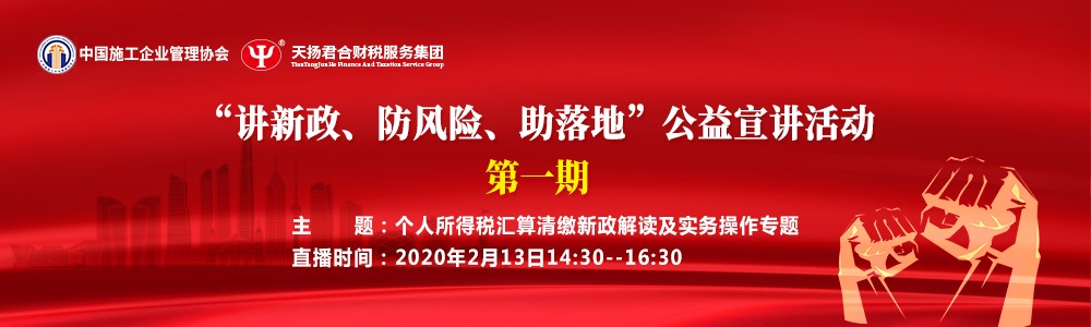 2月13日下午14:30,第一期《線上公益移動課堂---個人所得稅匯算清繳新政解讀及實務操作專題》順利開播。本次活動通過天揚網校平臺進行線上直播,邀請到多家大型央企和地方大型企業參加,為了保證線上直播建立了15個專屬微信群共計7500多人用于系列學習討論,本次活動形式受到嘉賓們的一致歡迎,同時天揚君合聯合中國施工企業管理協會在慕課平臺同步直播本次活動,參加人數超萬人規模。