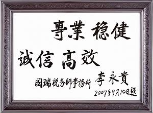2004年,經IAF&PAC QMS MLA認可,國瑞正式通過ISO9001:2000質量管理體系認證,成為由中國質量認證中心在全國認證通過的第一家稅務師事務所。通過認證的范圍如下:稅務顧問,稅務籌劃,稅務代理,稅務咨詢,代理帳務,涉稅審計和服務。